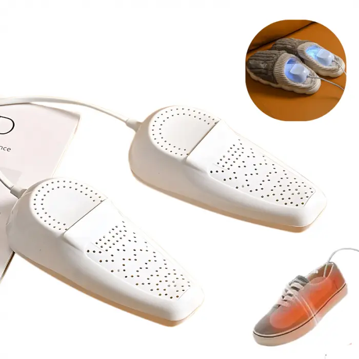 - Con dos elementos PTC incorporados capaces de calentar hasta 150°, elimina la humedad de los zapatos, los desodoriza y los esteriliza en minutos