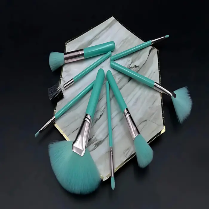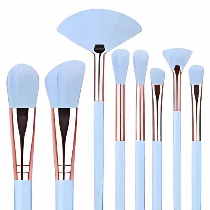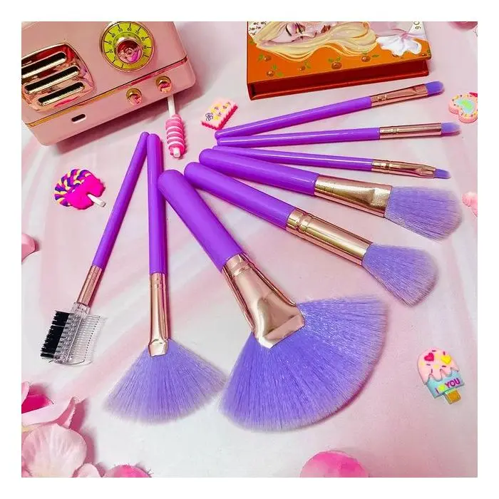 Hermoso set de siete brochas y un peine con cepillo para cejas y pestañas. Ideal para completar tu juego de maquillajes y tener un tocador ideal.